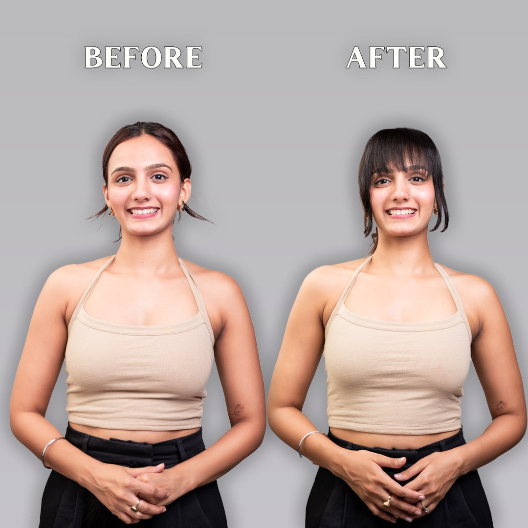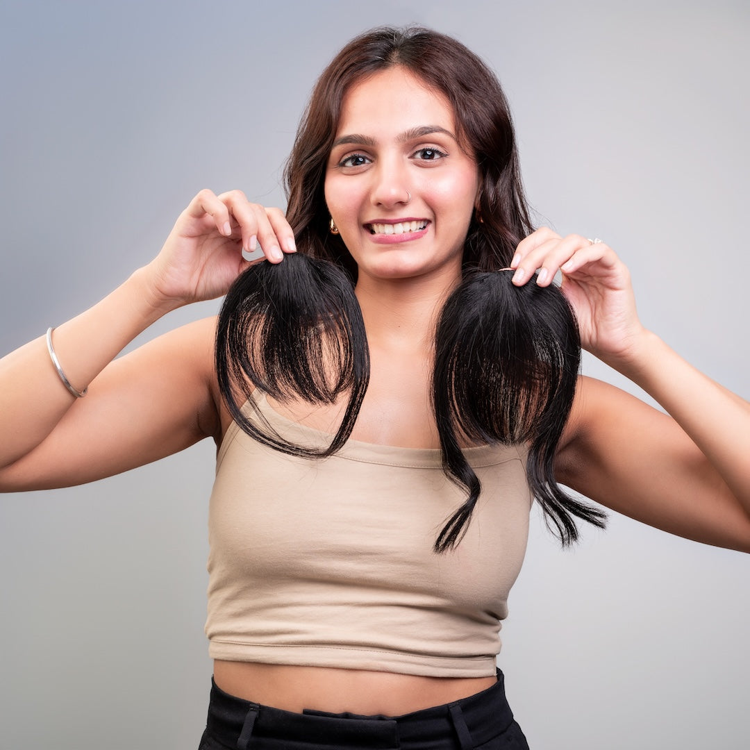 Thinking about trying bangs but not ready to commit? Our Clip-In Bangs with Side Pieces offer the perfect solution for a temporary yet stunning transformation. Designed to blend seamlessly with your natural hair, these bangs extensions with side pieces are easy to attach and remove, giving you the flexibility to switch up your look in an instant. Available in Jet Black, Natural Black, and Dark Brown, and with light and dense thickness options, Hair Affair's Clip-In Bangs with Side Pieces let you experiment with different styles to find your perfect match. Enjoy the versatility of bangs with added face-framing pieces, without the long-term commitment, and effortlessly enhance your hairstyle for any occasion.